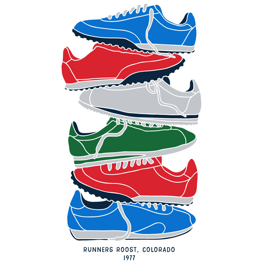 Create original graphic t-shirt line for Runner's Roost Running Stores.